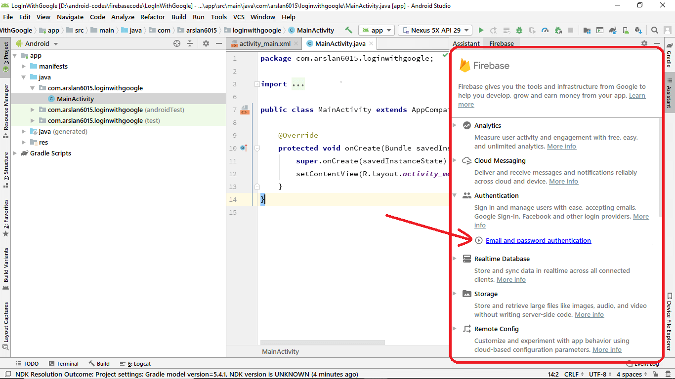 Google Sign In Android Studio Firebase - · enable google sign in · add .. Firebase auth supports authentication of user using username and password, phone numbers and sign in using google, facebook, twitter and more. Step of implementation google authentication · create an android project · setup and add project on firebase console. Before you begin · in the firebase console, open the auth section. Go to firebase console, select your project and inside it go 'authentication' from the left panel inside 'develop' section. · enable google sign in · add .